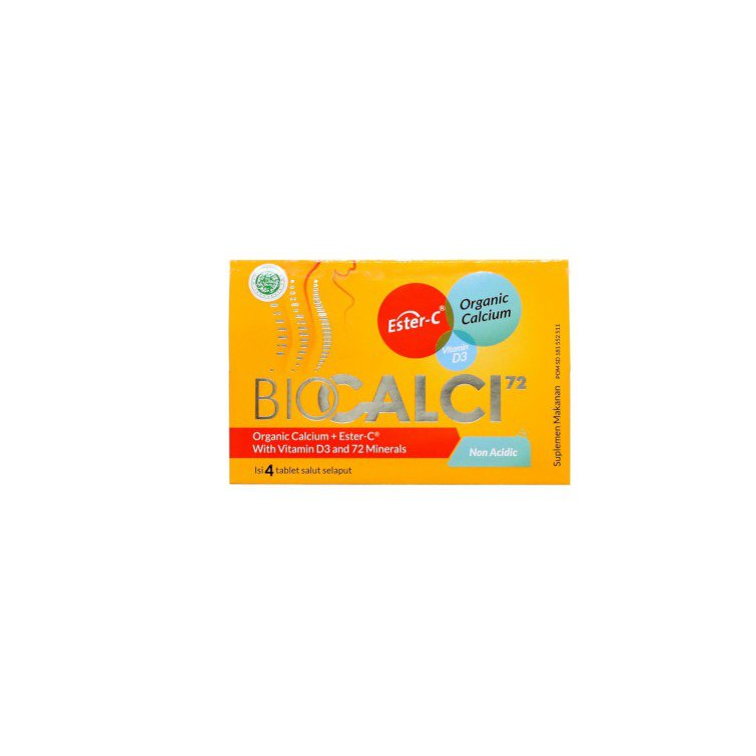 BIOCALCI-72 TABLET merupakan suplemen Kalsium Organik yang dikombinasikan dengan Ester C dan dilengkapi dengan Vitamin D3 serta 72 mineral. Kalsium organik pada suplemen membantu memelihara kesehatan tulang, dengan kandungan Ester-C untuk bantu jaga daya tahan tubuh serta bersama dengan vitamin D3 berguna untuk meningkatkan penyerapan kalsium ke dalam tubuh. Selain itu, Biocalci-72 juga bermanfaat untuk mereka yang memiliki kebutuhan tinggi akan kalsium seperti wanita hamil, menyusui dan menopause serta mengandung 72 mineral yang dibutuhkan oleh tubuh. Suplemen ini tidak bersifat asam (non acidic).