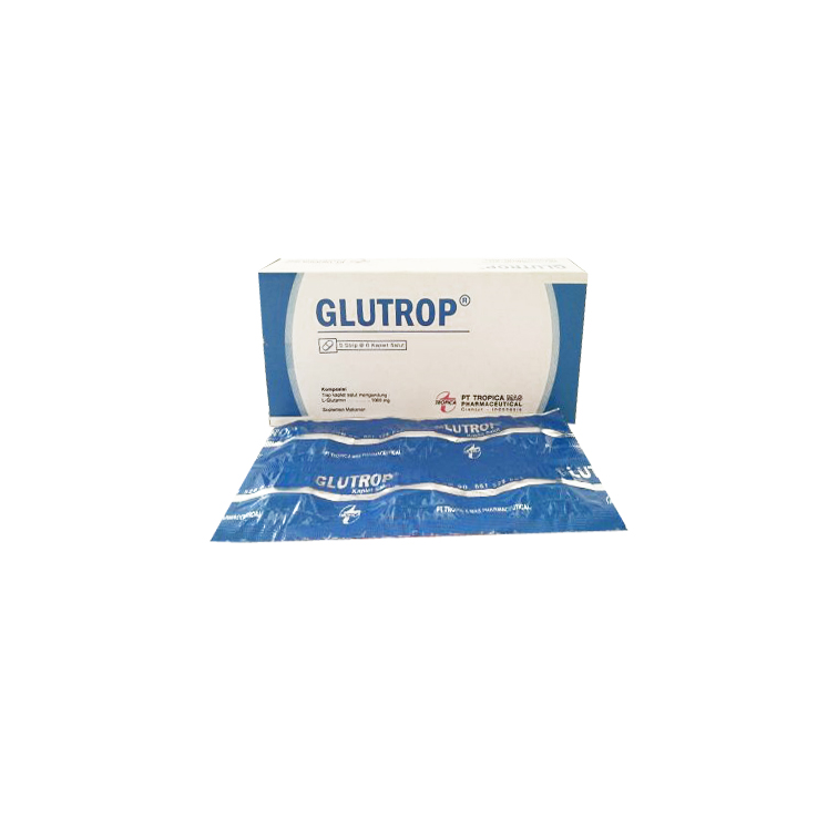 GLUTROP 1 G merupakan suplemen yang mengandung L-Glutamin 1000 mg. GLUTROP digunakan untuk suplementasi asam amino L-Glutamine. Selain itu GLUTROP digunakan sebagai terapi penunjang utk pasien dg penurunan sistem imun.