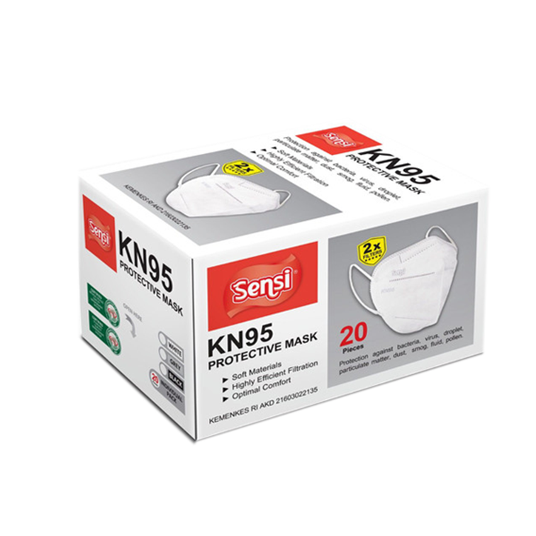 Sensi KN95 Protective Mask White merupakan masker penutup wajah yang digunakan untuk menutup hidung dan mulut. Masker KN95 dapat menyaring 95 persen partikel yang sangat kecil sehingga efektif digunakan untuk mencegah penularan penyakit dari tetesan cairan tubuh yang keluar melalui hidung atau mulut dan melindungi dari bakteri, virus, debu, serbuk sari, asap kendaraan, polusi.