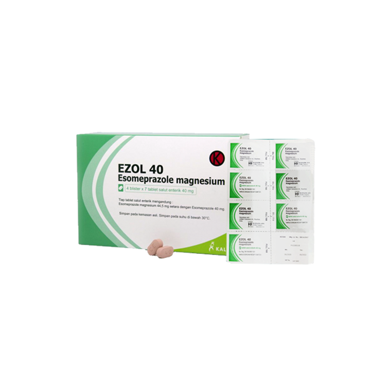 EZOL 40 MG TABLET adalah obat yang memiliki kandungan Esomeprazole 20 mg. Esomeprazol adalah penghambat pompa proton yang menekan sekresi asam lambung dengan penghambatan spesifik H+ / K+ ATP ase di sel parietal lambung. Dengan bertindak secara khusus pada pompa proton, Esomeprazole menghambat langkah akhir dalam produksi asam, sehingga mengurangi keasaman lambung. Obat ini digunakan untuk pengobatan penyakit refluks gastroesophageal (GERD), sindrom Zollinger-Ellison, dan dikombinasikan dengan antibiotik untuk pengobatan pasien tukak lambung yang disebabkan infeksi H. pylori.